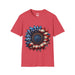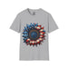 The standout feature of this sunflower American flag tee is its distinctive design.