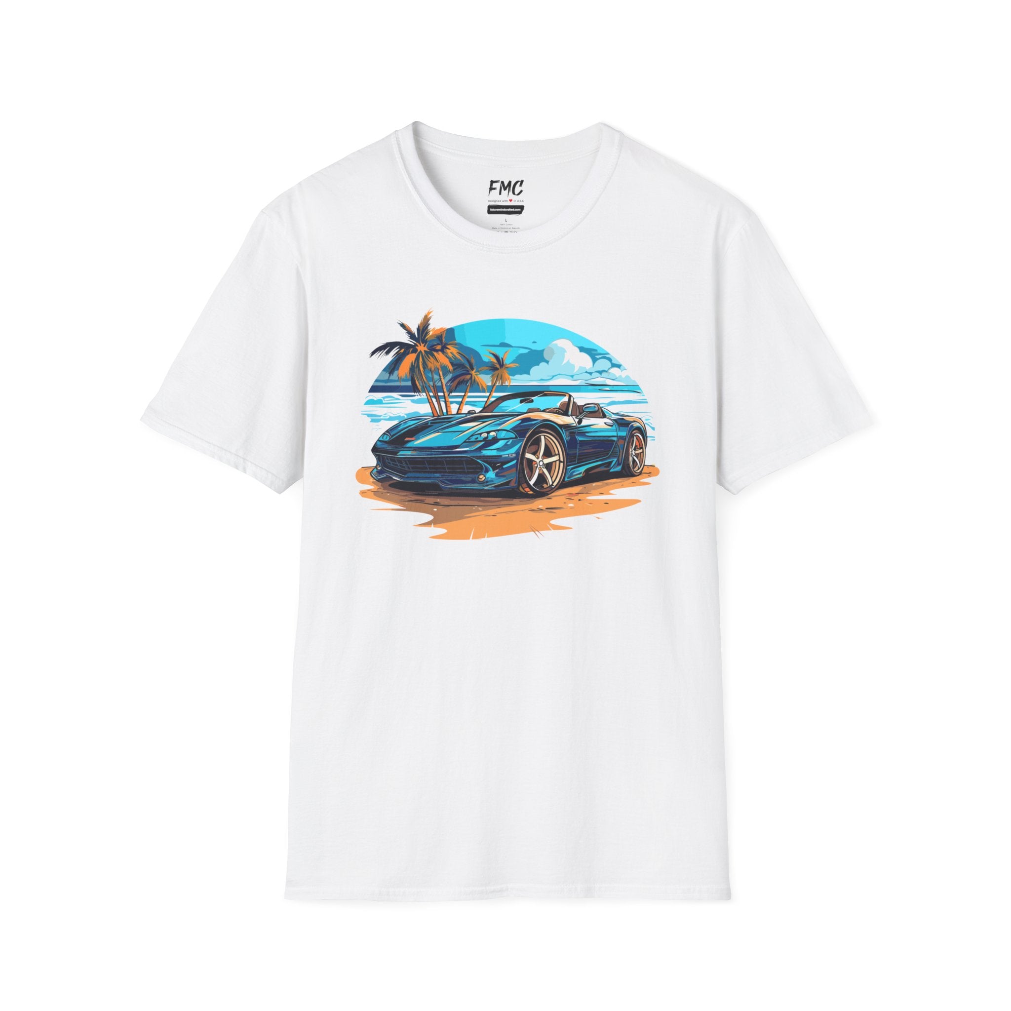 Hit the beach in style with the Palm Tree Shirt, featuring a sleek Sport Car Summer Design!